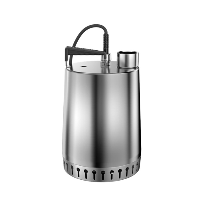 Dränkbar vertikal enstegspump i rostfritt stål med vertikal utloppsanslutning och inbyggd 1-fas motor (isolationsklass F) med temperaturvakt. Pumpen är försedd med inloppssil och ett halvöppet pumphjul med 12 mm fritt genomlopp, vilket gör den lämplig för grundvatten, regnvatten och liknande vätskor.