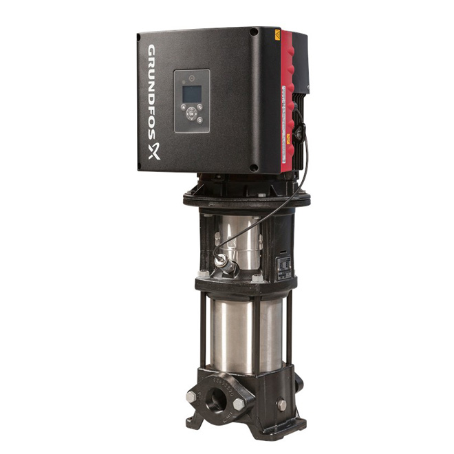 Vertikal, flertrins centrifugalpump med in- och utloppsanslutningar placerade i linje på samma höjd. Pumpens hus och underdel är tillverkade i gjutjärn, medan samtliga vätskeberörda komponenter består av rostfritt stål. En patronmonterad tätning ger hög driftssäkerhet, trygg hantering och enkel serviceåtkomst. Kraftöverföringen sker genom en delad koppling.