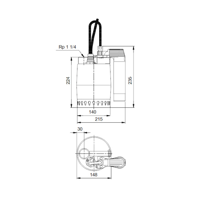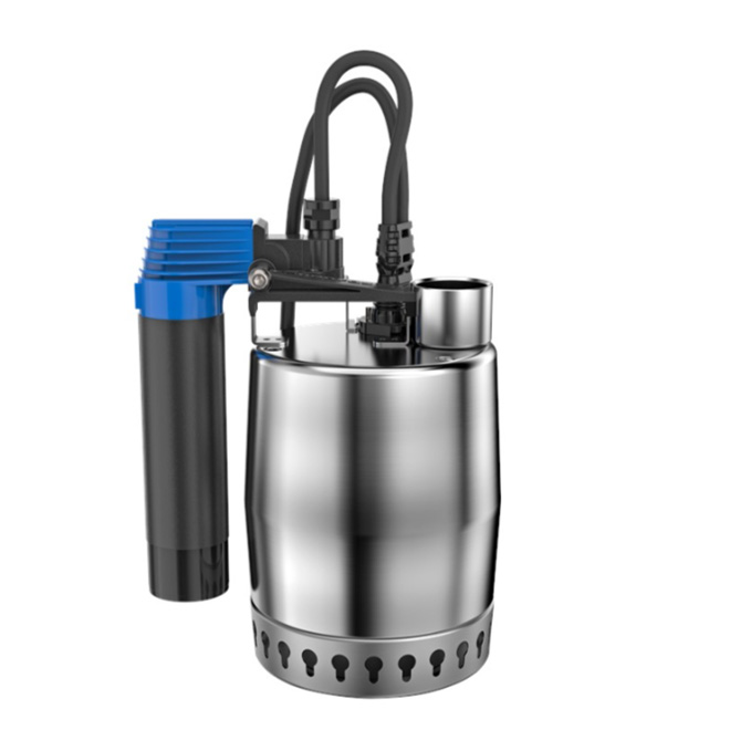 En dränkbar vertikal enstegspump i rostfritt stål med vertikal utloppsanslutning och en inbyggd 1-fas spaltrörsmotor i isolationsklass F, utrustad med temperaturvakt. Pumpen levereras komplett med inloppssil, bärhandtag, 10-meters motorkabel och en vertikal nivåvippa för automatiserad start och stopp.