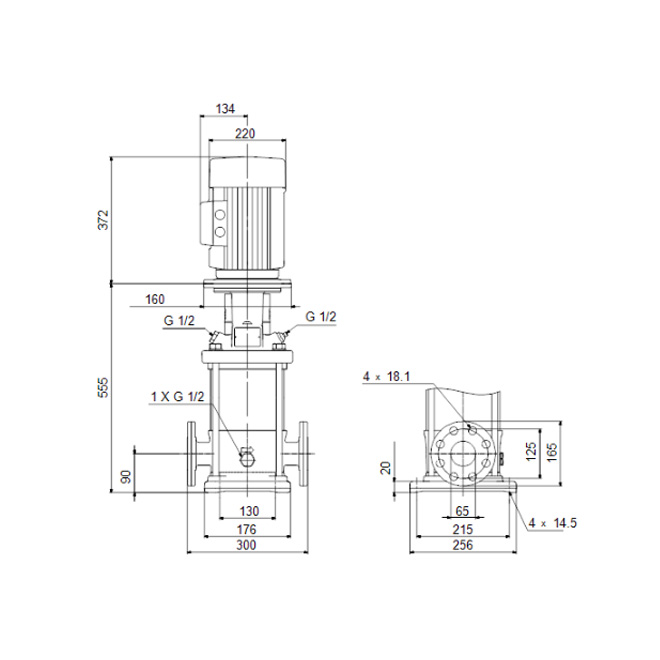 Denna vertikala flerstegspump med centrifugalprincip har både inlopps- och tryckanslutningar placerade på samma nivå (inline). Pumpens hus och bottensektion är tillverkade i robust gjutjärn, medan samtliga vätskeberörda komponenter består av rostfritt stål för lång livslängd och korrosionsskydd. En patrontätning ger hög driftsäkerhet, trygg hantering och enkel serviceåtkomst. Kraftöverföringen sker via en delad koppling, och pumpen är utrustad med en tre-fas, fotmonterad asynkronmotor som är fläktkyld för effektiv drift.